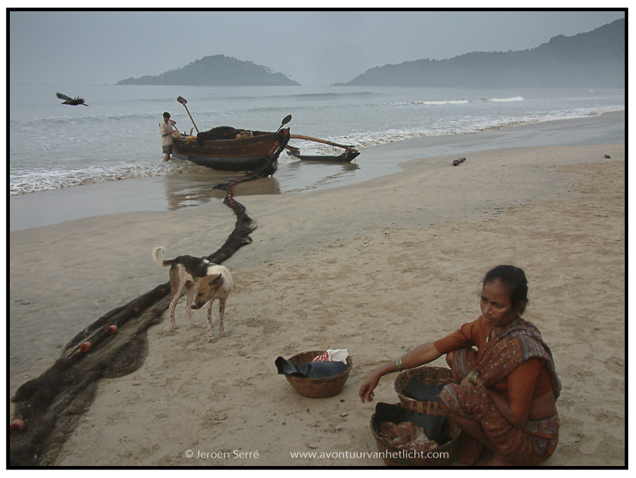 De gezamelijke ochtend vis activiteiten van een dorp in Goa -India